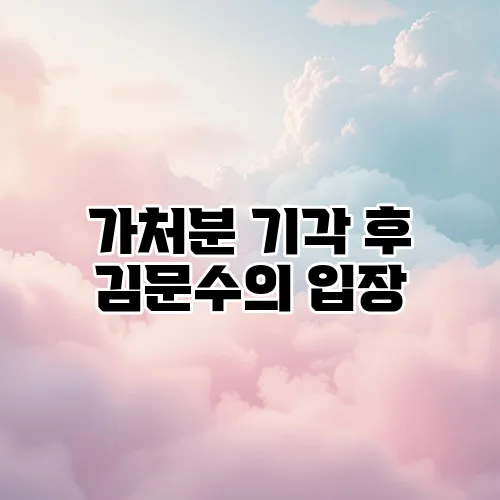 김문수 씨는 이번 가처분 기각 후 자신의 입장을 명확히 하고자 하는 노력을 보이고 있습니다. 그는 언론 인터뷰 등을 통해 자신의 주장을 펼치고 있으며, 이를 통해 여론을 환기시키려 하고 있습니다.